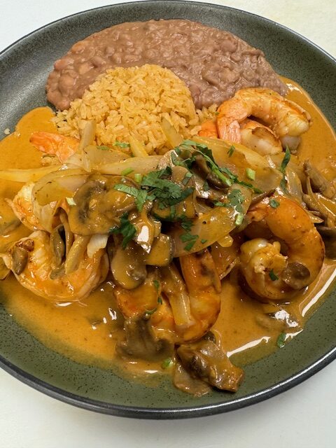 Your favorite meat (or shrimp) sauteed with onions, tomatoes, cheese, and salsa in a flour tortilla. Served with rice and beans, guacamole, sour cream, and pico de gallo.